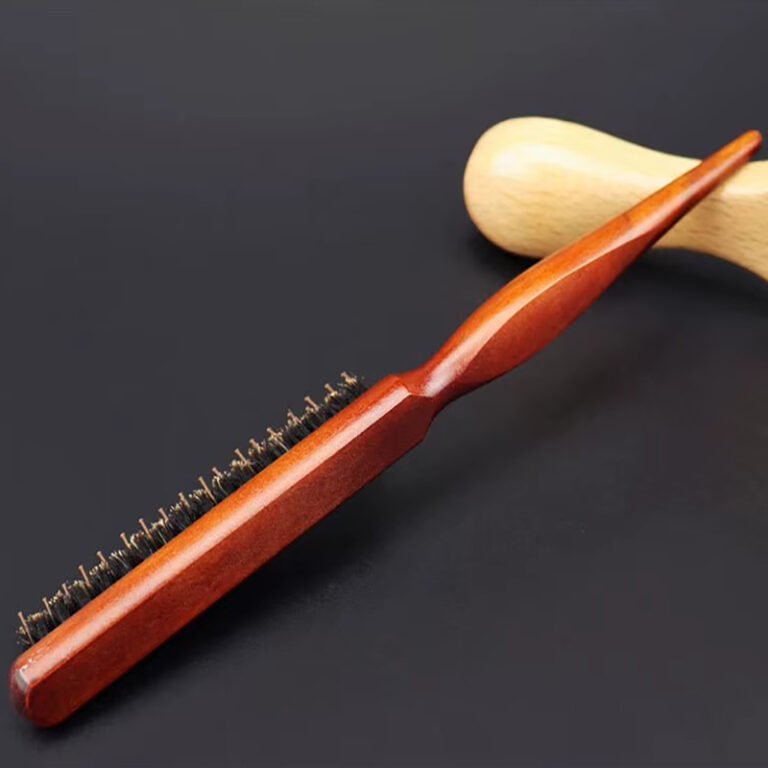 The Wooden Pointed Tail Teasing Brush is a practical styling tool designed for precise hair sectioning and effortless volume creation. Made with a smooth wooden handle for a comfortable grip, this brush features mixed bristles that help control, shape, and style the hair more effectively. The pointed tail makes it easy to separate sections, define parts, and create cleaner, more detailed hairstyles.