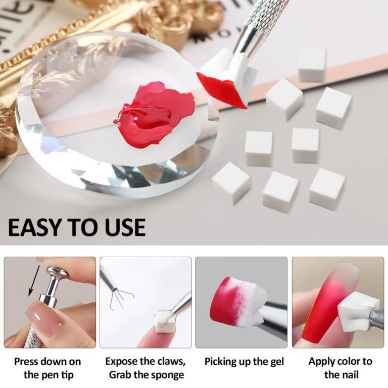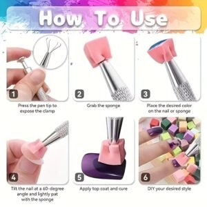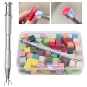 Package includes:100Pcs Square Gradient Nail Sponge +1Pc Grabbing Pen 1. Nail sponge grip clip, easy to use and strong grip