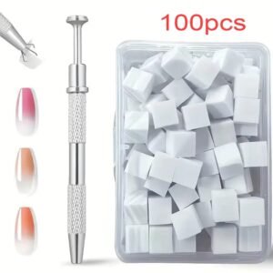100Pcs High Density Cube Sponge Nail Art Sponge Set Gradient Nail Brushes Gel Polish DIY Nail Sponge Grab Pen Manicure Tools