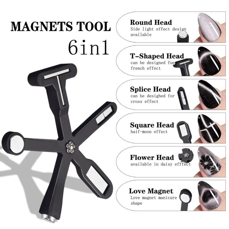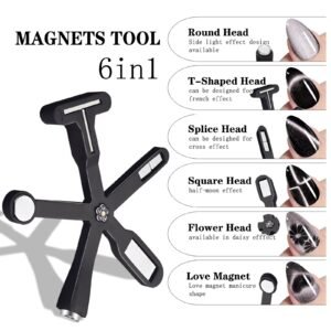 2.Multi-Function Design:Newest upgraded 6-in-1 nail polish magnet tool comes with 5 unique magnetic heads, which allows you to create a variety of fascinating cat eye effects, such as elegant French effect, fascinating black holes, delicate floral patterns, and cute love heart shapes.