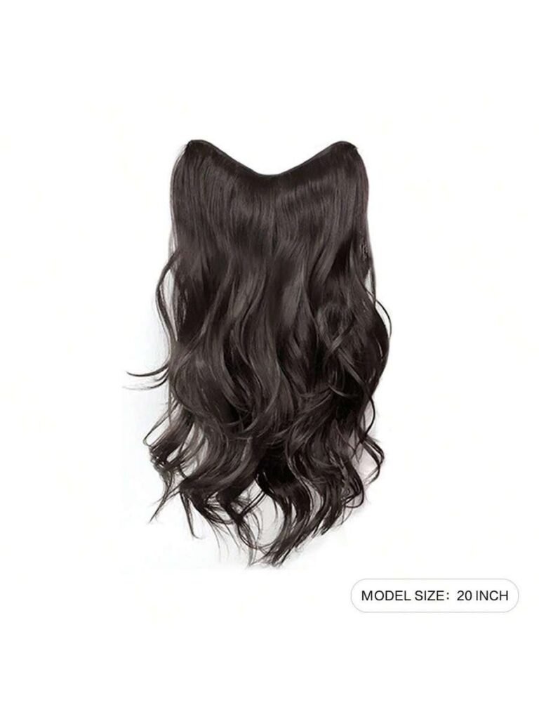 ynthetic Long Wavy Curly 5 Clip in Hair Extension Fashion Invisible V-shaped Heat Resistant Black Hairpiece for Women