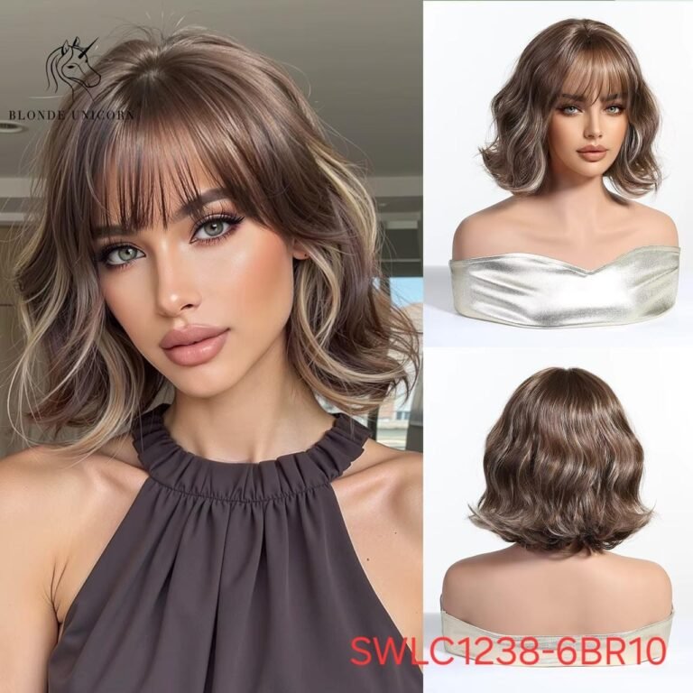 Heat-Resistant Synthetic Wig, Short Wavy Hair with Bangs, Model SWLC1238-6BR10