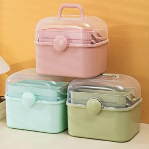Multipurpose Portable Storage Box – 3 Tiers for Cosmetics, Manicure Tools & Sewing Supplies