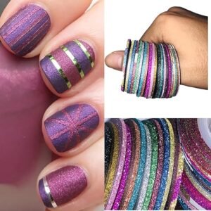 - Easy To Use: – Line Nail art tape is easy to use and easy designs for nails: Self-adhesive, no glue is needed, clean and convenient. If you use a top coat over the lines they will last longer and won’t lose any shine.