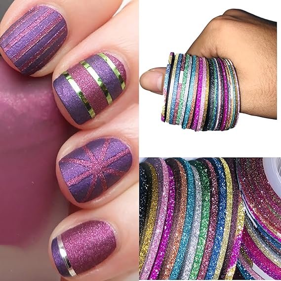 - The line finger nail art supplies can be used to design nail art,like paste silver nail striping tape with highlight,nail manicure etc.Also can be used with UV Gel,Acrylic nail art,diy nail polish supplies,nail painting tape