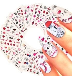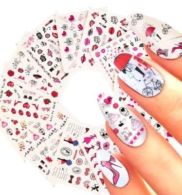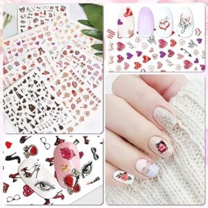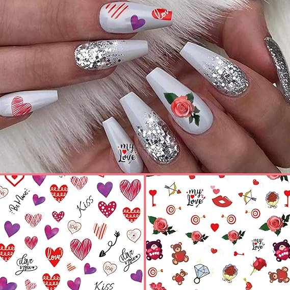 - 💋 Sheets water transfer nail decals with different patterns about Valentine’s Day, and they include different sizes to meet your demands, enough for you to create your own nails as you like.