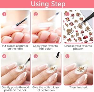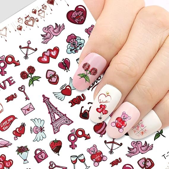 - 💋 Convenient to Use: The nail art decals are designed with self-adhesive characteristic, and they are very convenient to use and can be applied on your nails for a whole Valentine’s Day, not fall off easily. And you can also use nail gel to cover to make the stickers last longer.