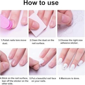 - Package Includes: 4 sheets of nail adhesive tabs (24 tabs per sheet), with 12 different sizes in each sheet to fit all fingernails