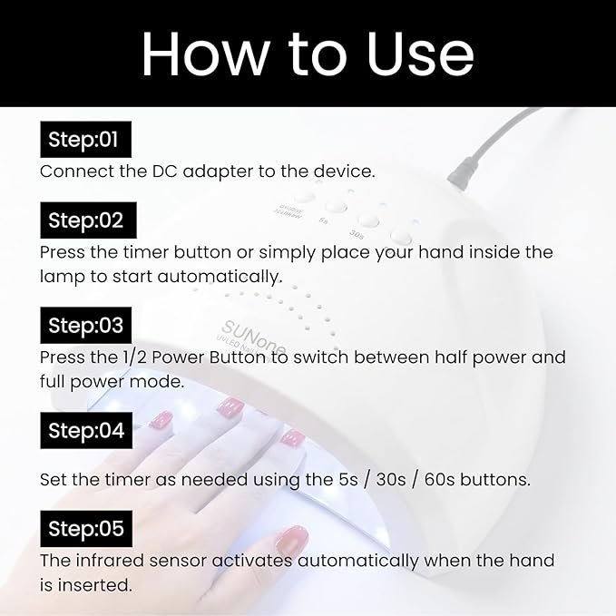 • Dual Light Technology: Uses 30 UV/LED beads to cure all types of gel polishes.