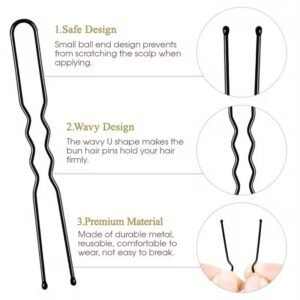 These hairpins are ideal for creating buns, updos, bridal hairstyles, formal looks, and everyday hair arrangements. Their black color blends naturally with dark hair, offering a neat and discreet finish. Suitable for both personal and professional use, this set is a great addition to salons, beauty professionals, and home styling kits.