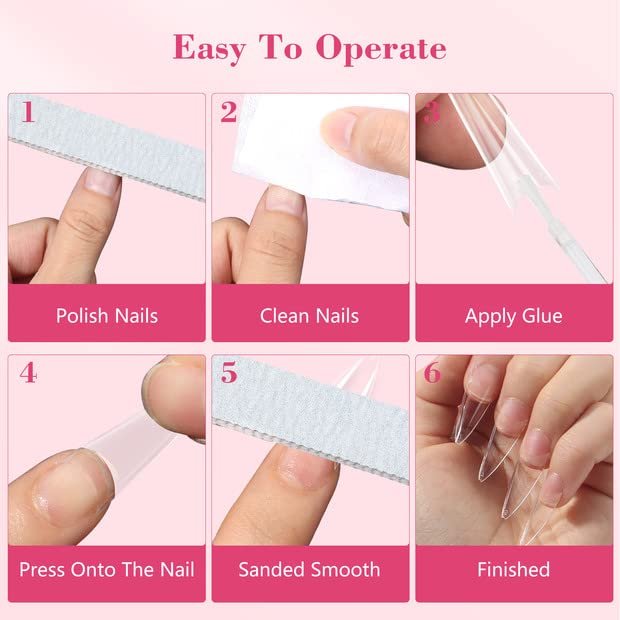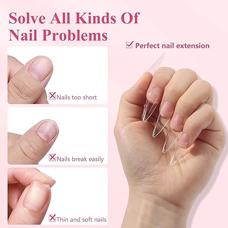 - تصميم ستيليتو شفاف: أطراف أظافر شفافة ومدببة مثالية لإنشاء أنماط أظافر حادة وعصرية.