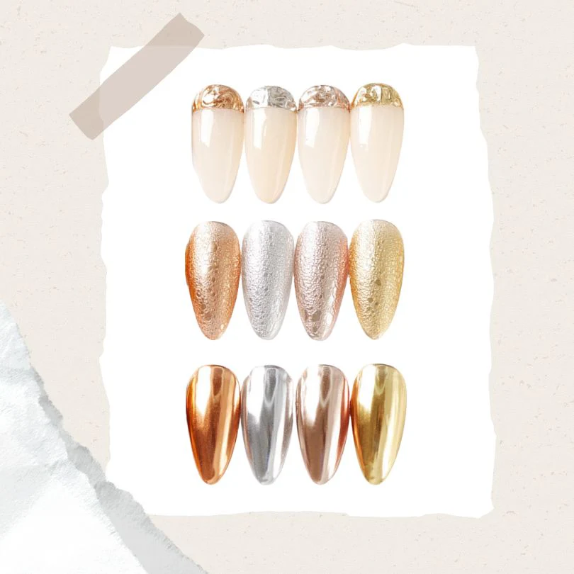 - يمنح تأثيرًا معدنيًا لامعًا لتصميمات أظافر عصرية وفاخرة.