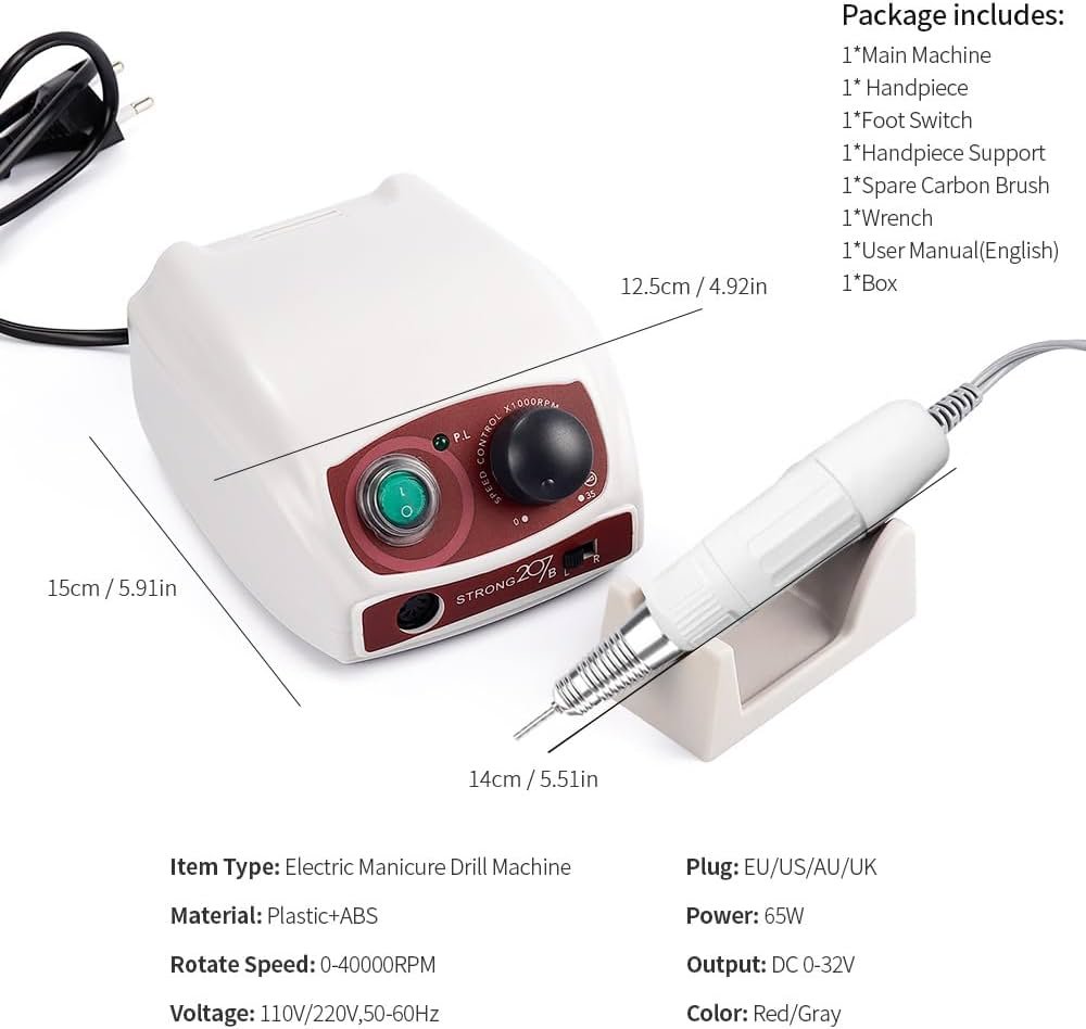 المواصفات: • محرك قوي بسرعة عالية • تحكم بالسرعة لعمل دقيق • إمكانية الدوران باتجاهين • تشغيل هادئ مع اهتزاز منخفض • تصميم مريح لليد • مناسب للأظافر الطبيعية والتركيبات