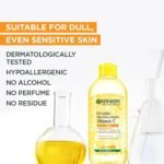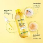 - يزيل الأوساخ والملوثات: تعمل جزيئات الميسيلار الفعالة في ماء غارنييه بفيتامين سي على إزالة ما يصل إلى 100% من المكياج بالإضافة إلى الأوساخ والشوائب دون التسبب بجفاف البشرة. يساعد فيتامين سي الموجود في ماء الميسيلار على تفتيح البشرة وإزالة البهتان.