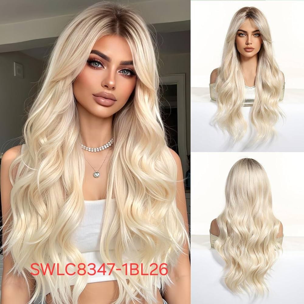 شعر مستعار صناعي مقاوم للحرارة، شعر طويل مموج، موديل SWLC8347-1BL26