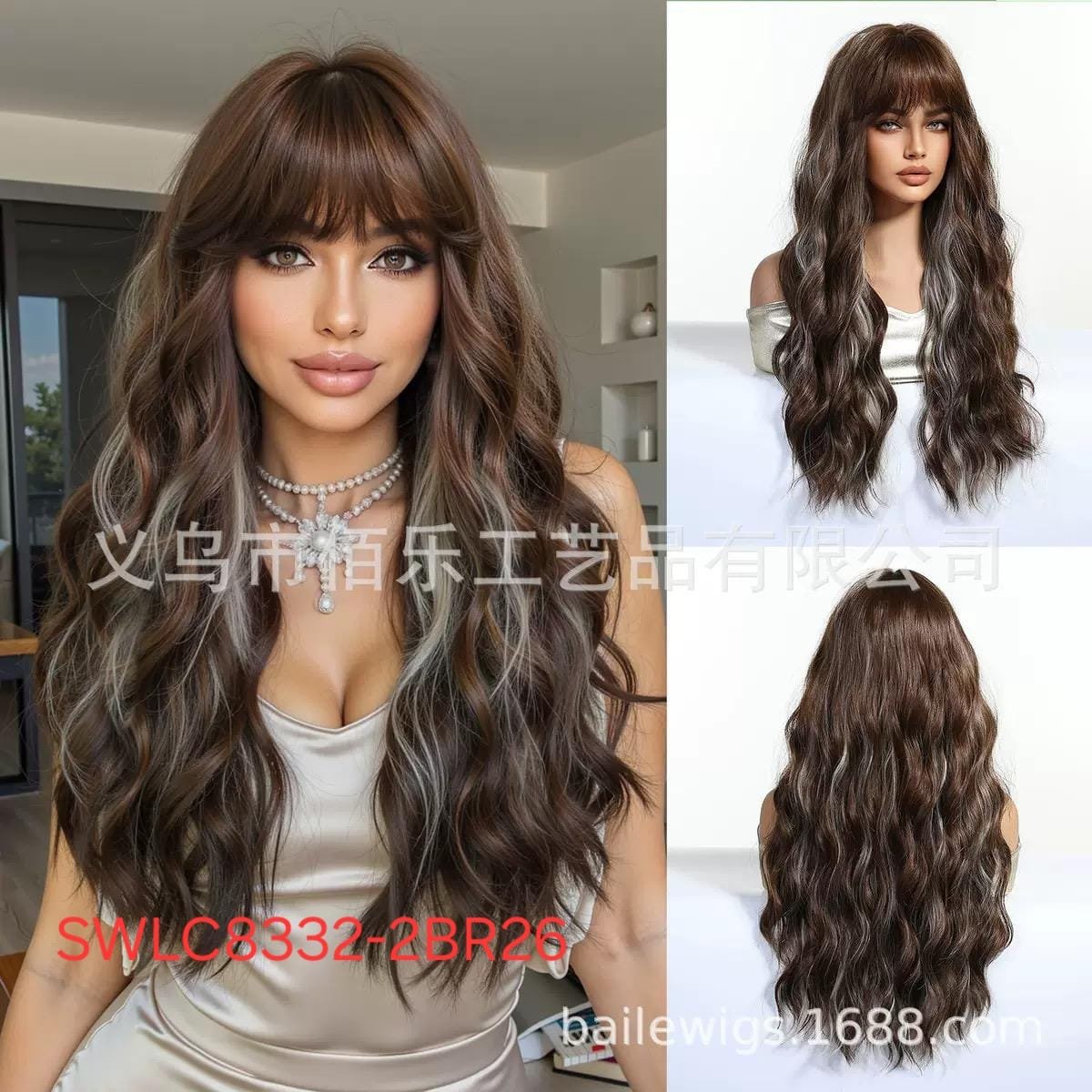 شعر مستعار صناعي مقاوم للحرارة، شعر طويل مموج مع غرة، موديل SWLC8332-2BR26