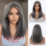 شعر مستعار صناعي مقاوم للحرارة، شعر أملس، طول متوسط، موديل SWLC1295-2BR16-F12263A