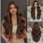 شعر مستعار صناعي مقاوم للحرارة، شعر طويل مموج، لون بني كستنائي، موديل SWLC8331-2BR28-C12301
