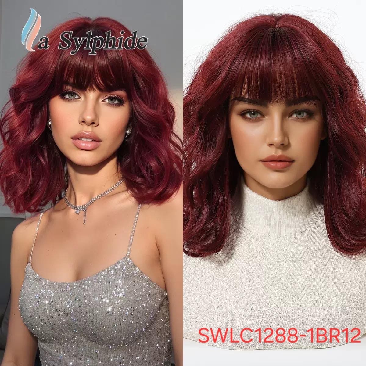 شعر مستعار صناعي مقاوم للحرارة، قصير مع غرة، موديل SWLC1288-1BR12
