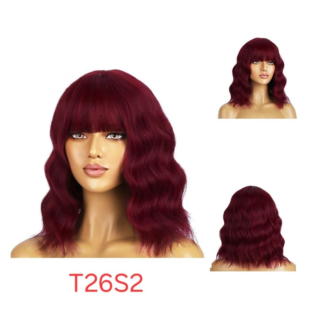 شعر مستعار صناعي مقاوم للحرارة، قصير مع غرة، موديل T26S2