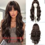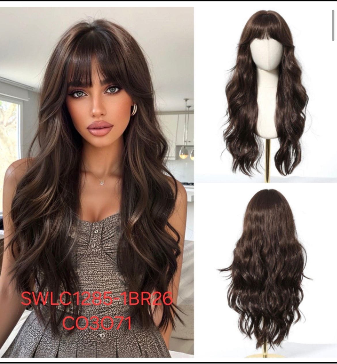 شعر مستعار صناعي مقاوم للحرارة، شعر طويل مع غرة، موديل SWLC1285-1BR26-CO3O71