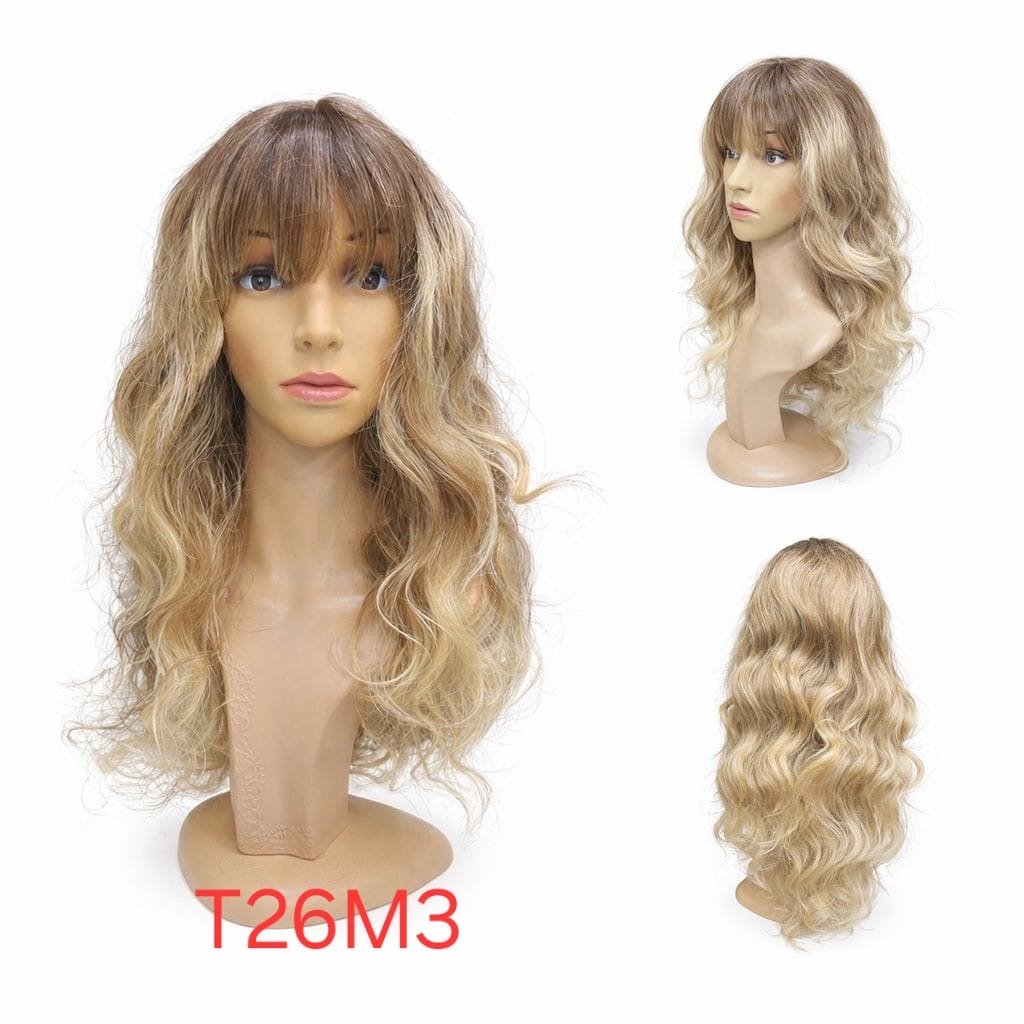 شعر مستعار صناعي مقاوم للحرارة، متوسط ​​الطول مع غرة، موديل T26M3