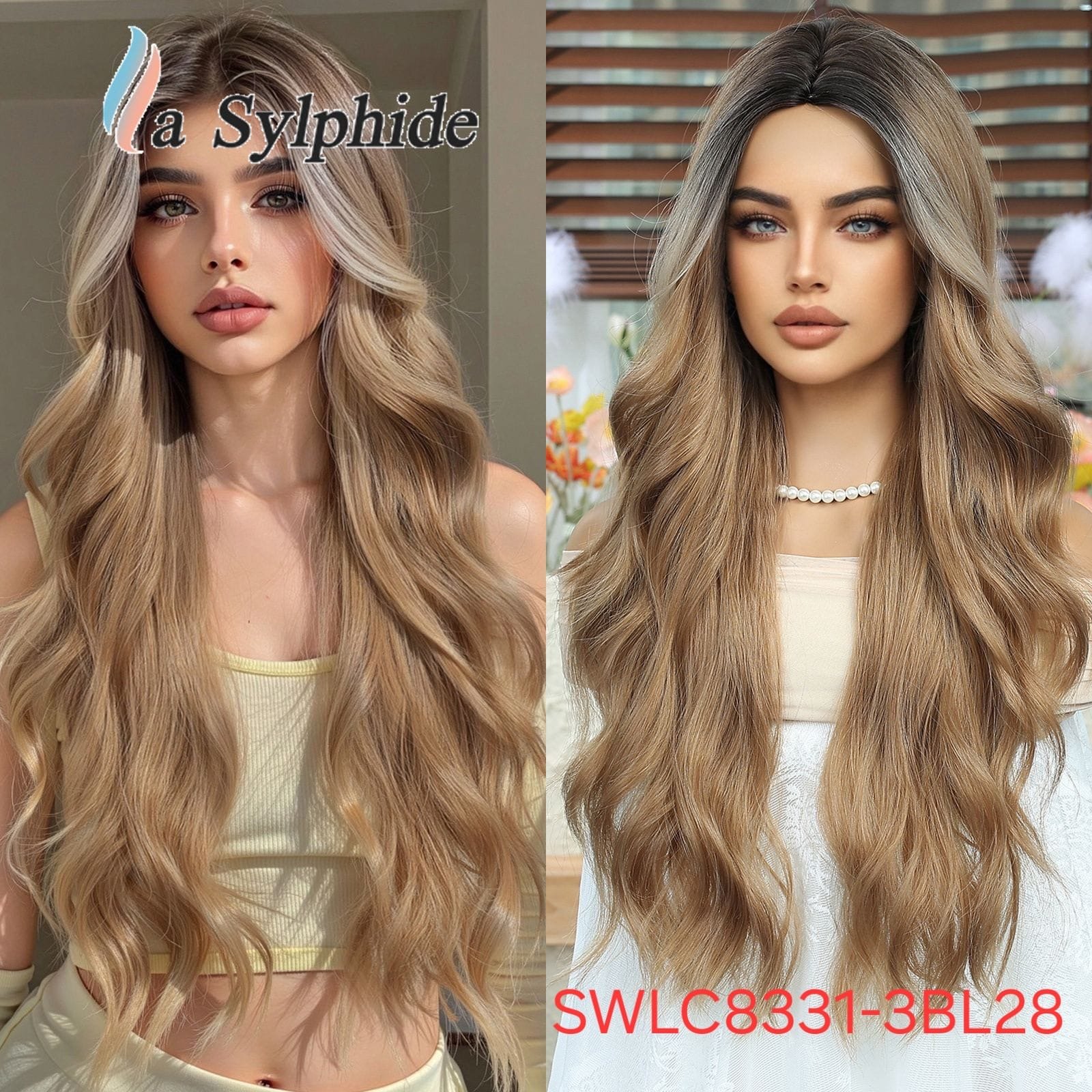 شعر مستعار صناعي مقاوم للحرارة، شعر طويل، موديل SWLC8331-3BL28