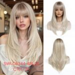 شعر مستعار صناعي مقاوم للحرارة، متوسط ​​الطول، شعر أملس، موديل SWLC6344-4BL24-C10173A