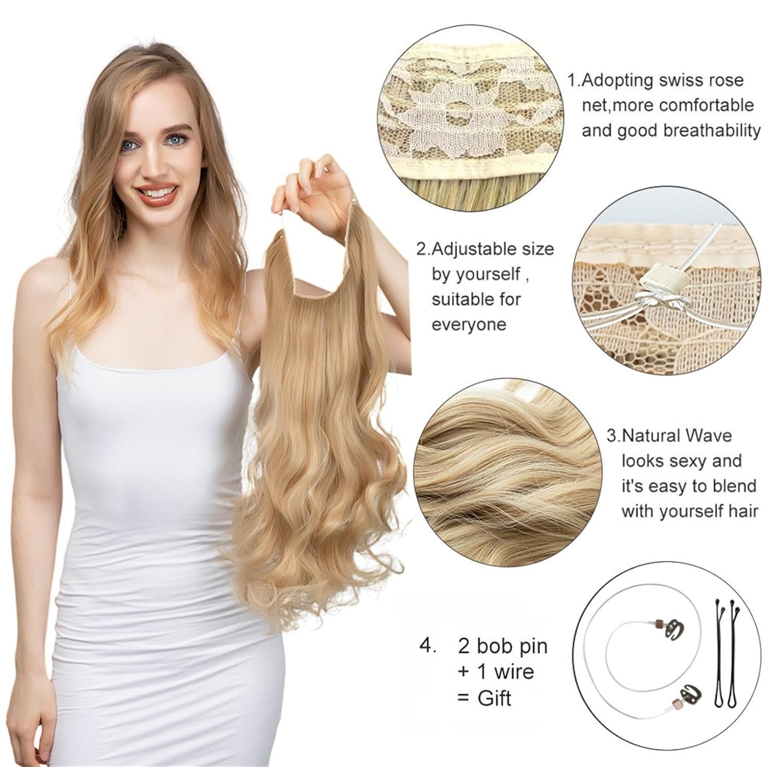 وصلات شعر سلكية غير مرئية، طول 18 بوصة، مجعدة ومموجة، قطع شعر سرية للنساء بدون مشبك، رقم 8، 22 بوصة