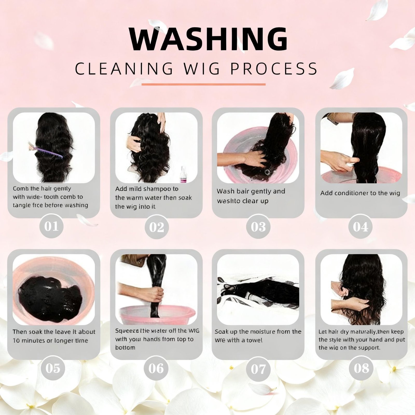 ننصح باستخدام مشط واسع الأسنان مُصمم لفك تشابك الشعر المستعار للحفاظ على مظهره الجديد.