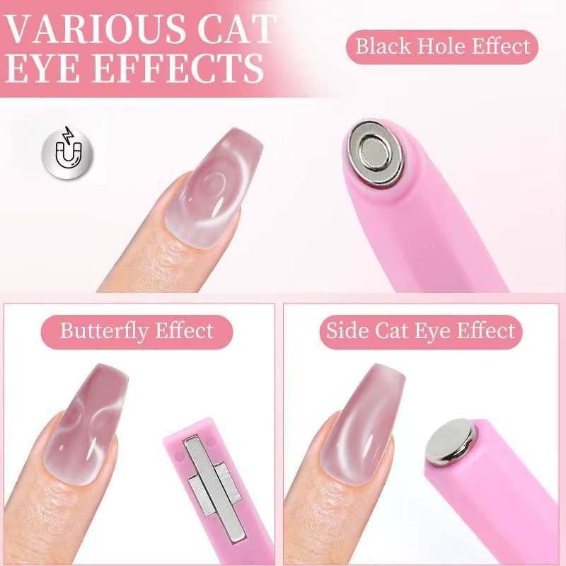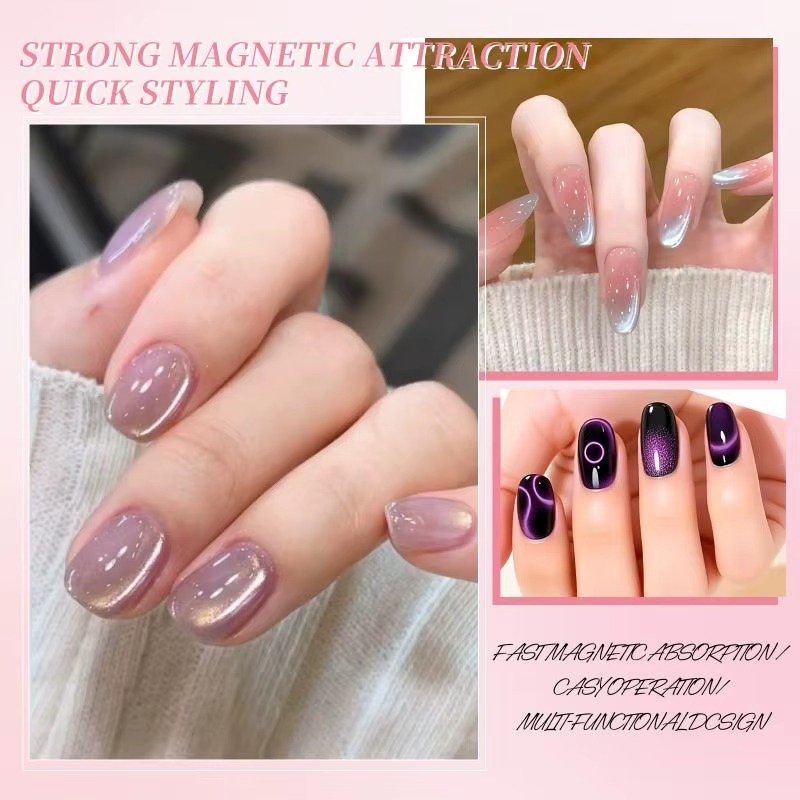 1. متعدد الوظائف: لا يقتصر دور قضيب المغناطيس ذو الرأسين لفن الأظافر على إنشاء تأثير عين القطة الفريد فحسب، بل يمكن استخدامه أيضًا في تصميمات فن الأظافر لتعزيز جمال يديك.